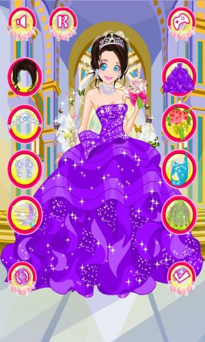 每个女孩子都梦想着自己出嫁的时候是什么样的,这款软件是一款新娘换装的游戏,点击衣服图标的按钮可以直接切换衣服,其他的按钮可以切换其他的道具;“R”代表重置,让装扮回到开始的样子;旋转的箭头是“随机”,按了之后角色随机穿一套衣服和饰品;“勾勾”是展示你打扮好的角色,按下之后会隐藏掉其他的按钮;喇叭按钮可以关掉音乐。 漂亮的新娘很快就要结婚了,所以我们应该为典礼选择漂亮的衣服!加入我们吧,帮我们找到最好的款式。这是一个婚礼的游戏,会很有趣!